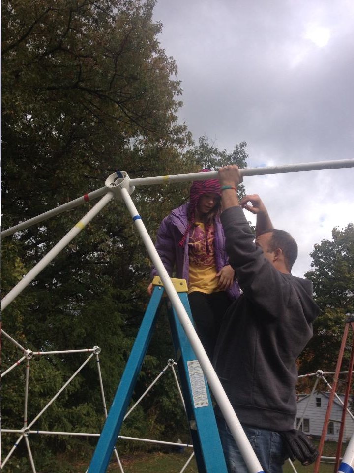 Closeup of 9 year old great-granddaughter placing the Final Strut