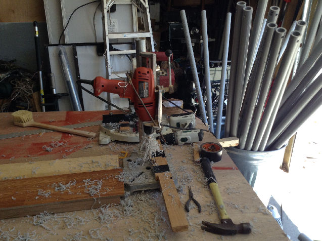 I have spray painted all the hubs and inner hubs with Krylon, to help with UV protection. It takes 9 cans. I have cut all of my struts from schedule 80 grey PVC, and drilled them. That took a total of four days, and determination, working alone.
