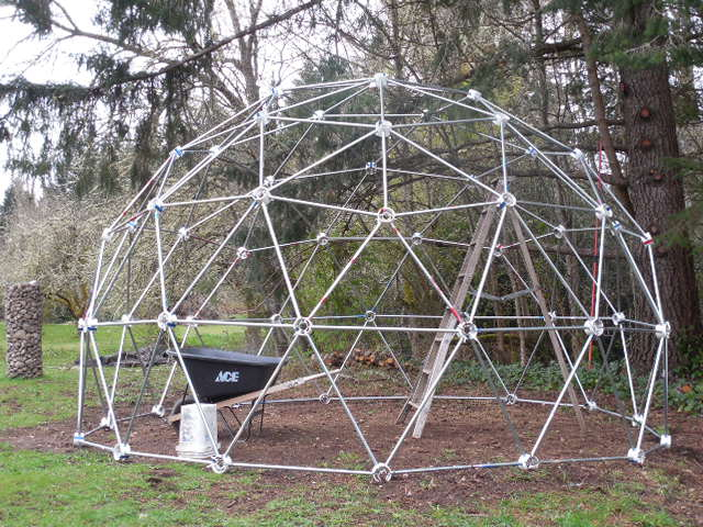 Hello, John and Carolyn,   Happy 2nd day of Spring!   Just finished putting my dome together.  A lot easier with proper sized holes in the hubs.  No where near as wobbly when going up.